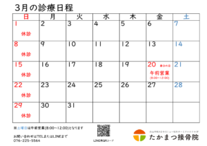 3月20日(金・祝)は午前中(8:00~12:00)営業いたします